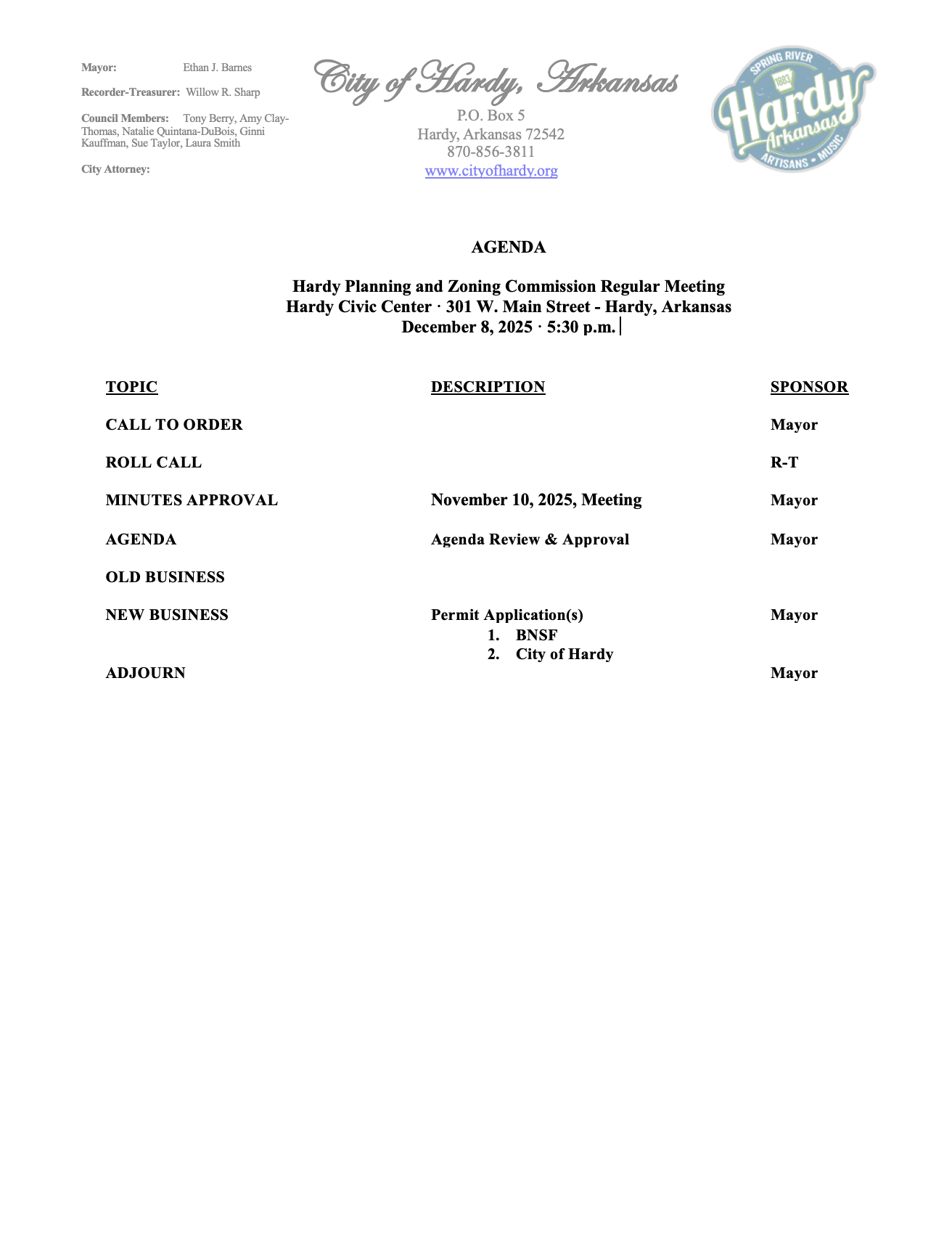 2025-12-08 Planning and Zoning Meeting Agenda